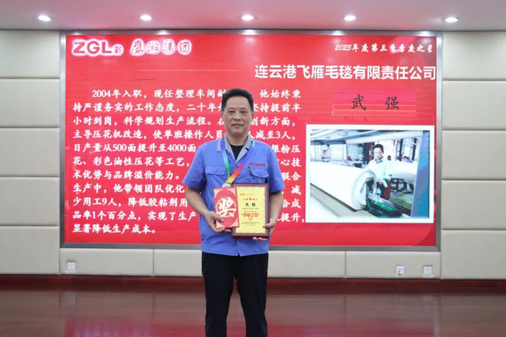 武強,自2004年加入飛雁毛毯公司以來,從基層新產品抬板壓花工逐步成長為整理車間副主任。他始終秉持嚴謹務實的工作態(tài)度,二十年如一日堅持提前半小時到崗,科學規(guī)劃生產流程。在技術創(chuàng)新方面,主導機器改造和工藝改革,有效提升了企業(yè)核心技術優(yōu)勢與品牌溢價能力,實現(xiàn)了生產效率與產品質量雙提升,顯著降低生產成本。為此榮獲先進工作者、技術管理創(chuàng)新之星、科學技術進步獎等多項榮譽。